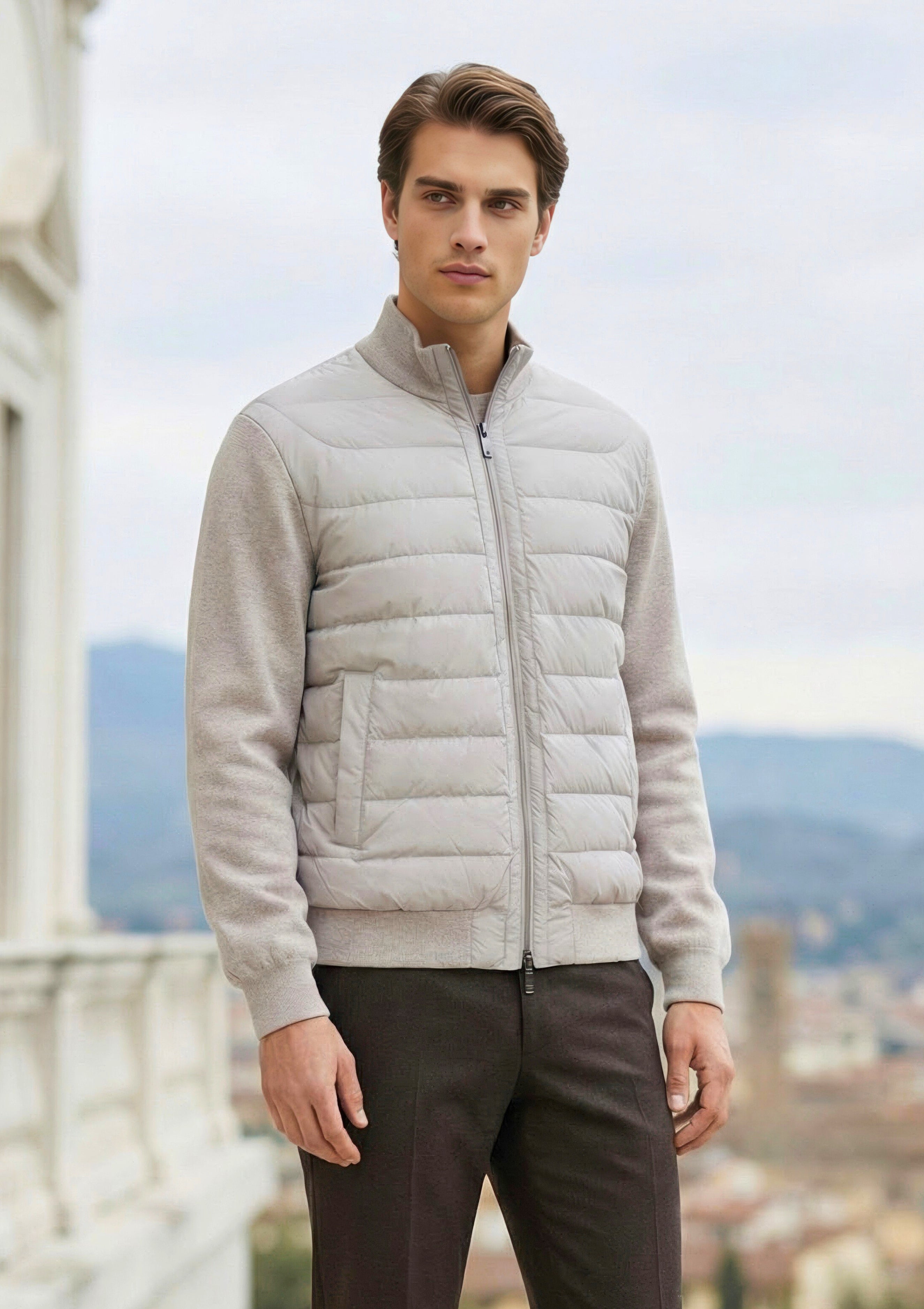 Men`s Knit Jacket, Quilted Down-Filled Lined, Detachable Select Shearling Lamb Collar